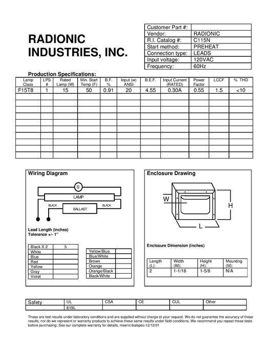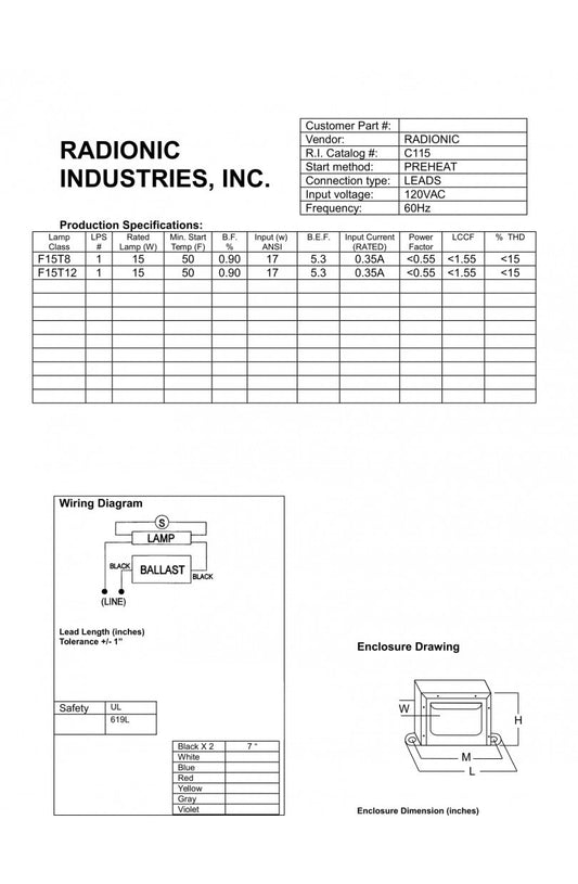 C106N 120v for (1) 6W, 7W or 8W lamp