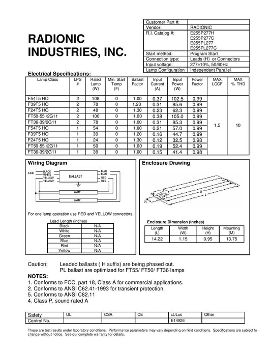 E259H12 Electronic Fluorescent Instant Start Ballast