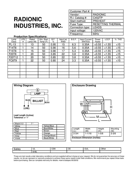 E259H12 Electronic Fluorescent Instant Start Ballast